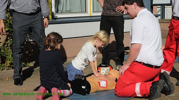 Markt und Kultur im frühherbstlichen Einklang Defibrillator-Training unter fachkundiger Anleitung vor dem Rathaus. (Foto: Hubert Richter)Mehr Bilder (Klicken zum Vergrößern):