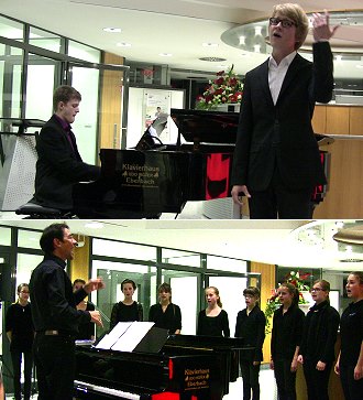 In Zusammenarbeit mit der Musikschule Eberbach und der Joseph-Martin-Kraus-Musikschule Buchen gastierten ein Duo aus Buchen und der Kammerchor der Singschule Eberbach in der voll besetzten Schalterhalle.