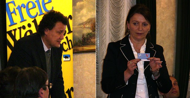 Eberbacher Versorgungsunternehmen bastelt an neuem Konzept (Fotos: Claudia Richter)(cr) Zu einer Informationsveranstaltung über die Stadtwerke luden am Mittwochabend die Freien Wähler (FW) in Eberbach ein. Zu Gast im Hotel Krone-Post waren der Leiter der Stadtwerke Eberbach, Günter Haag, sowie Dr. Ralph Franke (Bild links) und Vera Milus (rechts) von den Stadtwerken Viernheim.