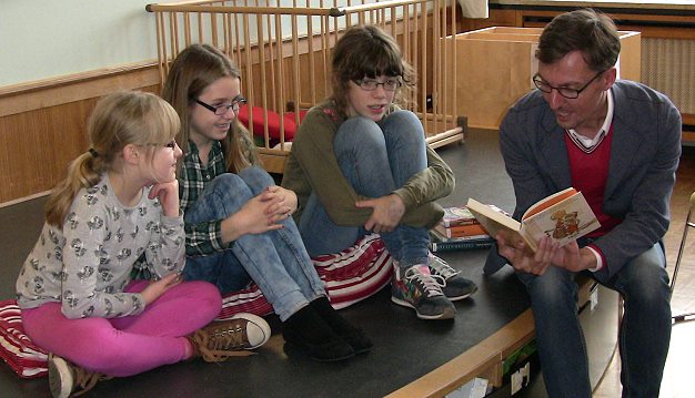 Der SPD-Bundestagsabgeordnete kam anlässlich des Vorlesetages nach Eberbach, um Schülerinnen und Schülern aus den Kinderbüchern vorzulesen, die sie selbst mitbringen durften oder in der Stadtbibliothek ausleihen konnten. Für gerade mal eine Handvoll Kinder war es fast schon Luxus, hatten sie doch den Bundespolitiker ganz für sich und genossen die Lesezeit mit ihm. Auch Castellucci fühlte sich sichtlich wohl in diesem kleinen Kreis, zu dem sich auch Stadträtin Christa Wernz gesellte.