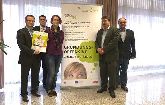 Bestens beraten in die berufliche Selbstständigkeit Von li.: Marco Kreuzer, Projektleiter der Gründungsoffensive Bergstraße-Odenwald und Gründerberater bei der der Wirtschaftsregion Bergstraße / Wirtschaftsförderung Bergstraße GmbH (WFB), Markus Lahm, Leiter des WFB-Fachbereichs Gründerberatung, Gründerin Simone Kost, Bürgermeister Rainer Sens, Stadt Hirschhorn, Bürgermeister Herold Pfeifer, Stadt Neckarsteinach. (Foto: WFB)(bro) (pm/ak) Pfiffige Gründungsideen umsetzen, ein Startup vorbereiten, mehr über die berufliche Selbstständigkeit erfahren: Mit der Gründerwoche Deutschland verfolgt das Bundesministerium für Wirtschaft und Technologie das Ziel, die Gründungsbereitschaft im ganzen Land steigern. Am vergangenen Sonntag ging die Gründerwoche Deutschland 2014 zu Ende, die bundesweit 1.924 Workshops, Seminare, Planspiele, Wettbewerbe und weitere Events rund um das Thema berufliche Selbstständigkeit geboten hat. Auch die Städte Hirschhorn und Neckarsteinach beteiligten sich an der Initiative und veranstalteten gemeinsam mit der Wirtschaftsregion Bergstraße / Wirtschaftsförderung Bergstraße GmbH (WFB) den zweiten Existenzgründertag im Hessischen Neckartal im Rahmen der Gründerwoche Deutschland.
