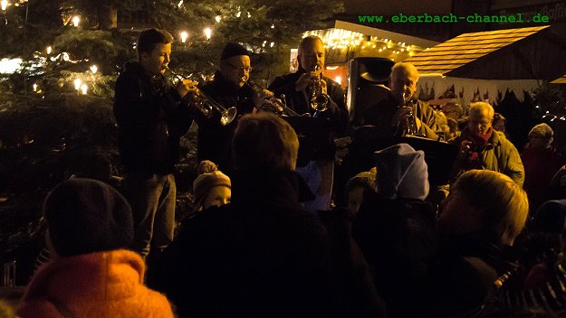 Von Freitagnachmittag bis Sonntagabend, 1. Advent, herrschte auf dem Neuen Markt vorweihnachtliche Stimmung. Aus rund 15 Buden bestand das Weihnachtsdorf, und neben Kunsthandwerk und kulinarischen Angeboten kam auch wieder die Unterhaltung nicht zu kurz. Vor dem beleuchteten Weihnachtsbaum in der Mitte des Platzes war eine Bühne aufgebaut, auf der verschiedene Kulturevents stattfanden. Es musizierten der evangelische Posaunenchor, der Fanfarenzug, die Riverside Gospel Singers, der Chor "Right Now!", Kinderchöre der Eberbacher Grundschulen und der russische Chor "Nadeshda". Am Samstagnachmittag kam das Christkind (Lilith Back) mit einem Schlittenhundegespann auf den Weihnachtsmarkt gefahren, und der Weihnachtsmann (Eugen Emmig) verteilte kleine Geschenke. Bürgermeister Peter Reichert hatte den Weihnachtsmarkt am Freitagabend mit einer kleinen Ansprache eröffnet.
