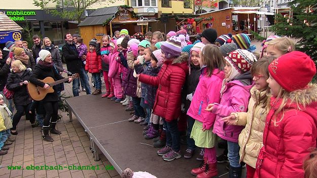 Von Freitagnachmittag bis Sonntagabend, 1. Advent, herrschte auf dem Neuen Markt vorweihnachtliche Stimmung. Aus rund 15 Buden bestand das Weihnachtsdorf, und neben Kunsthandwerk und kulinarischen Angeboten kam auch wieder die Unterhaltung nicht zu kurz. Vor dem beleuchteten Weihnachtsbaum in der Mitte des Platzes war eine Bühne aufgebaut, auf der verschiedene Kulturevents stattfanden. Es musizierten der evangelische Posaunenchor, der Fanfarenzug, die Riverside Gospel Singers, der Chor "Right Now!", Kinderchöre der Eberbacher Grundschulen und der russische Chor "Nadeshda". Am Samstagnachmittag kam das Christkind (Lilith Back) mit einem Schlittenhundegespann auf den Weihnachtsmarkt gefahren, und der Weihnachtsmann (Eugen Emmig) verteilte kleine Geschenke. Bürgermeister Peter Reichert hatte den Weihnachtsmarkt am Freitagabend mit einer kleinen Ansprache eröffnet.
