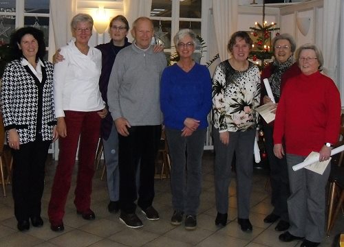 Rückblick auf ein erfolgreiches Wanderjahr V.l. Karin Kappes, Inge Hofmann, Helga Keller, Jürgen Friedrich, Ruth Schätzle-Schneider, Monika Rauch, Marlies Hantschel und Erika Walter. (Foto: privat)(bro) (hk) Kürzlich trafen sich die Wanderfreunde zu einer Adventsfeier. Ein Rückblick auf das Wanderjahr und Ehrungen standen neben dem gemütlichen Beisammensein auf dem Programm.