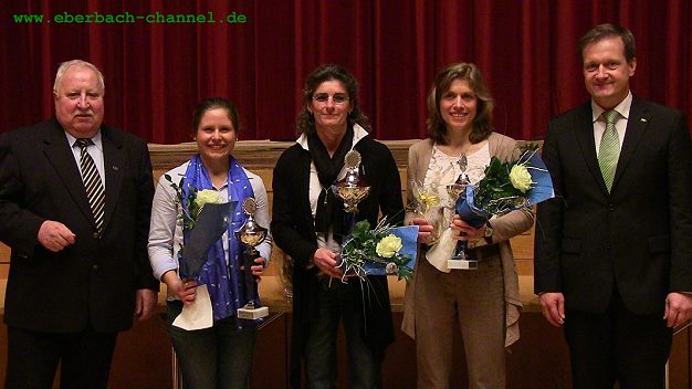 Im Vorfeld der gestrigen Veranstaltung waren auch in diesem Jahr wieder 42 Vereine bzw. Personen zur Wahl des Sportlers, der Sportlerin und der Mannschaft des Jahres aufgerufen. 31 Stimmberechtigte, darunter auch die EBERBACH-CHANNEL-Redaktion, gaben ihre Stimmen ab. Zur Sportlerin des Jahres wurde Bettina Greif gewählt, die in diesem Jahr unter anderem Deutsche Meisterin im Wildwasserschwimmen über 2.000 Meter wurde. Auf den Plätzen zwei und drei folgten Anna Hufnagel (Rudern) und Angelika Merkel (Schlittenhunderennen).