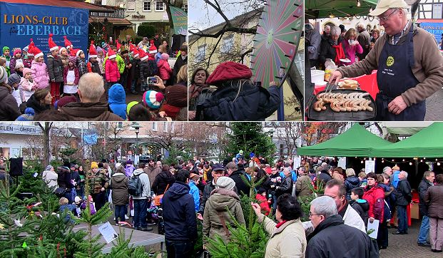 Glühweinduft im Weihnachtswald auf dem Lindenplatz (Fotos: Hubert Richter)(hr) Für vorweihnachtliche Stimmung sorgten heute der Lions- und der Rotary-Club in Eberbach auf dem Lindenplatz.