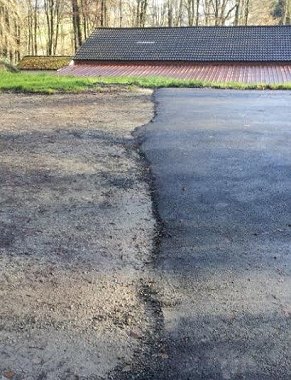 Der Parkplatz über der Sängerhalle ist nur zur Hälfte asphaltiert Plötzlich ist Schluss: Der Asphalt reichte wohl nicht, um den kompletten Parkplatz hinter der Sängerhalle zu befestigen. (Foto: Thomas Wilken)(tom) Einen akuten Fall von Asphaltmangel machte mit einigem Augenzwinkern Stadtverordneter Dirk Gugau auf der vergangenen Sitzung des Gremiums in Hirschhorn publik.