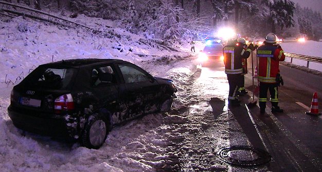 Gegen 16.15 Uhr war der 17-jährige Fahranfänger auf dem Weg zu seiner Arbeitsstelle mit einem Audi in Richtung Allemühl unterwegs. Ausgangs einer Linkskurve kam er auf nasser Fahrbahn nach rechts in den schneebedeckten Grünstreifen. Dort überschlug sich der Wagen und kam dann wieder auf den Rädern zum Stehen.