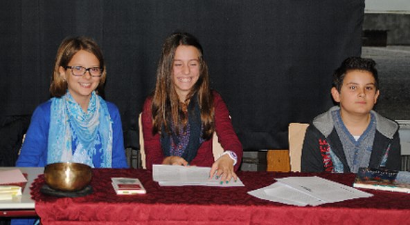 Junge Lesekünstler zogen das Publikum in ihren Bann V.l. Sophie Reichert, Laura Berisha und Finn Richter. (Foto: privat)(hr) Vorlesewettbewerb am HSG