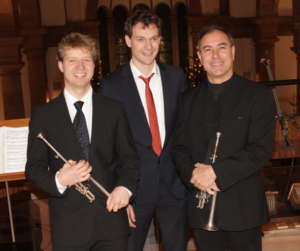 Glanzvoller musikalischer Jahresauftakt in der katholischen Stadtkirche  Der Trompeter Moritz Kohn, Bezirkskantor Severin Zöhrer und der Trompeter Karl-Heinz Halder(v.l.). (Foto:Wörner)(tw) Gestern hatte die katholische Pfarrgemeinde zum festlichen Neujahrskonzert mit Werken für Orgel und Trompete verschiedener Komponisten in die Kirche St. Johannes Nepomuk eingeladen.