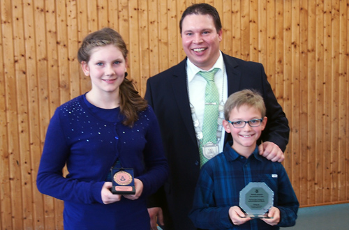 Zwei erste Plätze beim Regionalwettbewerb Katharina Reibold und Yannik Schnörr mit Bürgermeister Markus Haas. (Foto: Hofherr)(hof) Neben Ehrungen für Politiker, Sportler und Blutspender werden beim Neujahrsempfang in Waldbrunn auch immer Auszeichnungen für Leistungen im künstlerischen Bereich übergeben. In diesem Jahr waren es zwei Nachwuchspianisten, die von Bürgermeister Markus Haas geehrt wurden.