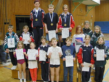 Axel Wilbertz war alleiniger Starter des SV Moosbrunn in der Klasse C/D. Er behauptete sich bei den 7 Jugendturnern und konnte sich ebenfalls die Goldmedaille vom Gaufachwart Reinhard Zettl, Turngau Heidelberg, umhängen lassen.