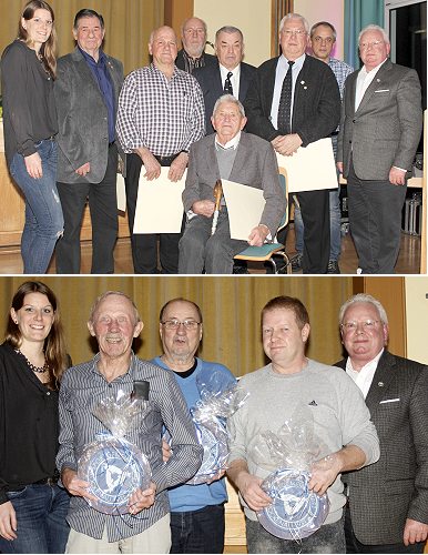 Sieben neue Ehrenmitglieder (Fotos: privat)(bro) (cum) Das gibt es bei der SG Rockenau auch nicht alle Tage: Sieben neue Ehrenmitglieder ernannte der Sportverein bei seiner Winterfeier am Wochenende in der Festhalle.