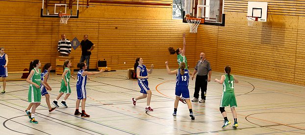 Im ersten Viertel punkteten die Eberbacherinnen durch Schnellangriffe, in der Verteidigung standen sie wie eine Wand und ließen so die Gäste überhaupt nicht zum Zuge kommen. 27:0 war das Ergebnis des ersten Viertels. Bis zur Halbzeit konnten sie ihre Führung gegen den Vorletzten der Tabelle auf 47:9 ausbauen. Nach der Halbzeit nahm die Mannschaft im Angriff das Tempo aus dem Spiel und konzentrierte sich auf eingeübte Spielzüge. In der Verteidigung gingen sie deutlich weniger zur Sache, so dass nun auch die Mädchen aus Schwetzingen einige Korberfolge verbuchen konnten. Mit einem 72:26-Endstand sicherten sich die Mädchen vom TVE weiterhin den ersten Tabellenplatz.