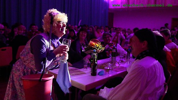 Nach dem Auftritt der Symbolfigur “Till” (Angela Frömming) versetzte der jüngste Tanznachwuchs, die “Eulenküken”, das Publikum nach Ägypten in die Zeit der Pharaonen. Carola Zimmermann und Diana Rieger verglichen humoristisch das moderne Leben heute mit den 1960er Jahren, bevor die “Eulenfunken” einen ersten Marschtanz präsentierten. Eine Lektion “Bayerisch für Einsteiger” gab es mit Johann Bachl, Bennis Nussbeutel, Steffen Bock und Angela Frömming. Tanzmariechen Manuela Vay riss das Publikum zu Beifallsstürmen hin, und Willi Rebscher, der von Bürgermeister Peter Reichert in der Sitzung mit dem Orden “Lachender Eber” der Stadt dekoriert wurde, stand wieder als Stadtführer in der Bütt. Ein echter Knaller vor der Pause war der Gesangscontest zwischen Andrea Berg (Nadja Krawczyk) und Helene Fischer (Tina Kämmler), das schließlich Conchita Wurst (Roman Krawczyk) für sich entschied. Und der zu dieser Nummer einführende Monolog von Barbara Krawczyk als Putzfrau wäre fast einen eigenen Programmpunkt wert gewesen.