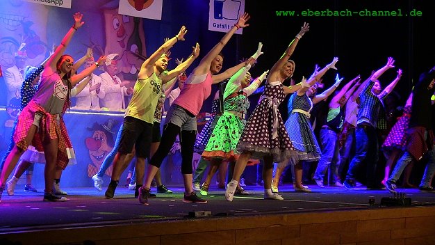 Schautänze gibt es von den Junioren der Ranzengarde (Bad Boys), den Kuckucksküken und Kuckuckskids (Steinzeit), den “Elwetritsche” (Turbulenzen auf hoher See), den Hallodries (Dirty Dancing) und schließlich den Nesthockern (Jugend im Wandel der Zeit), nach deren Auftritt Sänger Jürgen Huber ins traditionelle Finale überleitet mit dem Hit “Feiern in Eberbach” (zur Melodie von “Viva Colonia”).
