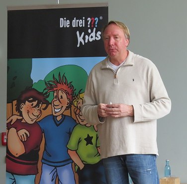Spannende Geschichten mit den Detektiven Justus Jonas, Peter Shaw und Bob Andrews werden seit 1968 vom Kosmos Verlag veröffentlicht. Viele Autoren schreiben regelmäßig neue Abenteuer. Einer dieser Buchautoren, der seit Ende der 1990er Jahre Geschichten um die Jung-Detektive schreibt, ist der Radiomoderator und Comedy-Autor Ulf Blank. Er kam heute auf Einladung der Leiterin der Stadtbibliothek Luzia Scharf nach Eberbach, um aus der Reihe "die drei ??? Kids" Abenteuergeschichten vorzulesen.