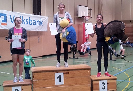 Ergocup 2015 in Neckarelz  Amelia Böhle (Mitte) und Hanaa Outojane (rechts) mit den Maskottchen der RGE. (Foto: privat)(bro) (tg) Traditionell fand am ersten Samstag im Februar der Ergometercup für Ruderer in Neckarelz statt. Statt auf dem Wasser wird hier auf Ruderergometern um die Wette gerudert, die miteinander vernetzt sind.