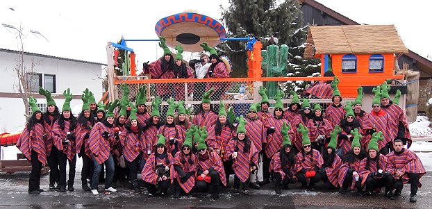 Jubiläumsumzug in Hirschhorn, Mudau und Eberbach (Foto: privat)(bro) (jc) Schon zum zehnten Mal werkeln „Die Wilden ausm Ittertal“ derzeit für die „Tollen Tage“ in Hirschhorn, Mudau und Eberbach. Bereits jetzt hat die regelmäßig zwischen 40 und 60 Teilnehmer große länderübergreifende Truppe aus den Ortschaften entlang des Itterbaches wieder viele hundert Arbeitsstunden in Kostümnäharbeiten und Wagenbau investiert.