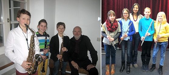 Alle wurden mit einem ersten Preis ausgezeichnet - eine Bestätigung für die wochenlange intensive Vorbereitung unter hochqualifizierter Anleitung der Lehrkräfte der Musikschule Eberbach Farida Chulakova (Querflöte) und Ralph Schweizer (Saxophon).