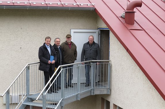 Nach 16 Monaten darf wieder gefeiert werden Bürgermeister Peter Reichert, Manfred Schüssler, Hans Leistner und Heinz Lang (v.l.) stellten das Sanierungsergebnis vor. (Foto: Claudia Richter)(cr) Die umfangreichen Sanierungsarbeiten an der Mehrzweckhalle in Rockenau sind abgeschlossen. Seit einiger Zeit wird das Gebäude wieder normal genutzt.