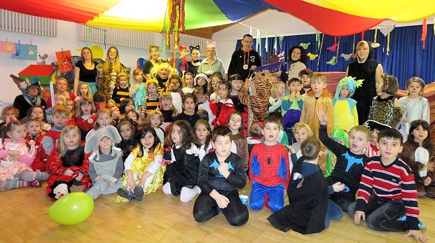 Karnevalgutsel für den Kindergarten (Foto: privat)(bro) (jb) In diesem Jahr unterstützen die Karnevalfreunde Haidebow den Eberbacher Kindergarten Arche Noah bei seinen Fastnachtsaktivitäten. Gestern, am "Schmutzigen Donnerstag", übergab der erste Vorsitzende des Vereins, Joachim Banschbach, im Rahmen einer Faschingsfeier des Kindergartens einen Teil der Wurfwaren an die Elternbeiratsvorsitzende Silva Winter. Der Rest wird am Dienstag direkt am Wagen der Haidebows überreicht.