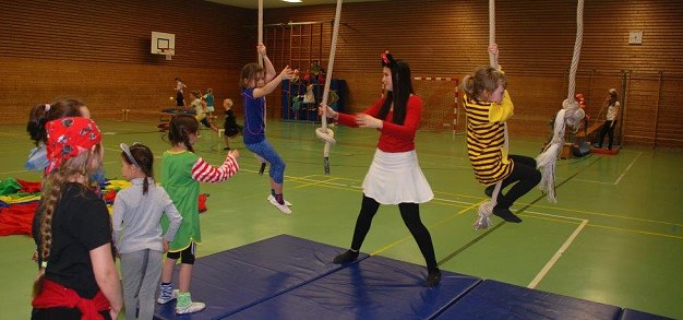 Am Dienstag waren die Schulkinder zu Tanz und zum Turnen an vielfältigen Gerätestationen eingeladen. Einen Tag später kamen die Eltern-Kind-Turngruppen zum "tierischen Fasching", und am Donnerstag waren noch die Drei- bis Sechsjährigen an der Reihe. Unter dem Motto "Bei den Tieren ist was los!" standen Bewegungslieder mit Tieren und zu den Tieren passende Gerätelandschaften auf dem Programm.