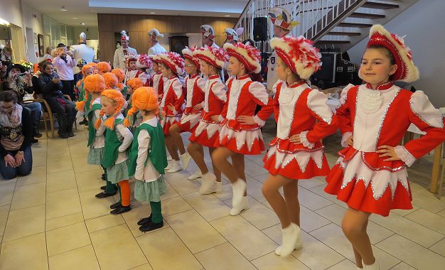 Traditionell feiern Mitglieder der KGK gemeinsam mit den Bewohnerinnen und Bewohnern des "Lebensrad" am Faschingssamstag eine kleine Prunksitzung. Auch gestern kamen die Kuckucke wieder ins Pflegeheim im Schafwiesenweg und sorgten mit Klamauk, Tanz und Gesang für eine närrische Veranstaltung, bei der Präsident Udo Geilsdörfer und Elferrat Jens Müller durch das Programm führten, das Barbara Menges als "Reschisserin" zusammengestellt hatte.