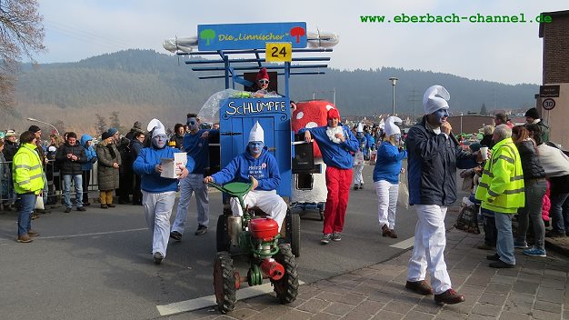 Zugmarschall Richard Rucktäschel und “Generalfeldmarschall” Matthias Denner haben den Umzug mit zehn Musikkapellen aus Waibstadt, Heilbronn, Meimsheim, Oberschönmattenwag, Wiesenbach, Aglasterhausen, Waghäusel, Heidelberg, Eberbach und Hirschhorn gespickt. Die am Umzug teilnehmenden Gruppen kamen unter anderem von den Hirschhorner Rittern und dem HCV Lachsbachperle, von der KG Kuckuck und dem Club Eulenspiegel nebst weiteren Zugnummern aus Eberbach und Ortsteilen, außerdem aus Waldbrunn, Rothenberg, Schönau, Neckarsteinach, Beerfelden, Hainbrunn, Mückenloch, Wiesenbach, Heddesbach und sogar Rastatt. Sehr aufwändige Motivwagen präsentierten auch in diesem Jahr wieder die “Wilden aus dem Ittertal” und die Karnevalfreunde Haidebow.
