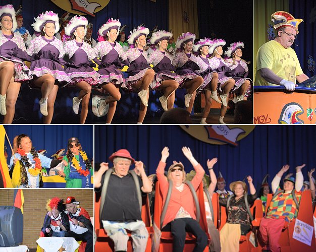 Das bunte Programm eröffneten Gerd Scheuermann und Karlheinz Neuer mit einem Rückblick auf die Fußball-WM. Danach marschierte der Elferrat ein, und der Präsident des MGV, Thomas Johe, und der Präsident des TSV, Marcel Daub, begrüßten das närrische Volk. Anschließend präsentierte die große Garde ihren Tanz, und auch Bürgermeister Egon Scheuermann begrüßte alle Narren. Eine lustige Show lieferten diesmal die Landfrauen Sensbachtal, die bei einem Ausflug eine Fahrt mit einer Achterbahn machten. Zahlreiche Büttenreden sorgten für Kurzweil: Horst Endl als Fastnachtsgeschädigter, die Spielerfrauen (Alex Köksal und Nicole Ihrig), die keine Ahnung vom Fußball haben, ein Ehepaar (Marcel Schäfer und soi Anna) und der Bauchredner Carsten Werner mit seinem Stoffdrachen-Paul. Eine gelungene Show präsentierte auch die große Tanzgruppe TSV mit einem Hexentanz, einstudiert von Julia Stumpf und Daniela Johe. Die Kehlekratzer hatten diesmal zwei Auftritte. Sie feierten ein Jubiläum - 3 x 11 Jahre. Aus diesem Anlass gab es eine Jubiläumstruppe, die aus ehemaligen Sängern zusammengesetzt war. Sie sangen Lieder von früher wie zum Beispiel "Sensbächer Nächte sind lang." Gesungen haben: Thomas Johe, Jochen Hörr, Helmut Michel, Udo Gärtner, Stefan Grüner, Florian Haas, Heiko Scheuermann und Volker Bäcker. Ihnen wurde jeweils ein Bierglas mit Aufschrift und ein Jubiläumsorden überreicht. Weiter ging es mit dem Tanz von Funkenmariechen Alena Holschuh, einstudiert von Franziska Johe. Aktiv wurden auch die Frauen von der ehemaligen Garde mit einem Showtanz als sieben Sensbacher Zwerge. Den nächste Programmpunkt lieferten die Stutzer mit der Fernsehshow "Wetten, dass..." und einem Auftritt von "Conchita Wurst". Danach zeigte das Männerballett eine Tanzshow zum Thema "Marine und Piloten" - einstudiert von Marion Hartmann. Mit einem Schlusspunkt und dem großen Finale ging das gelungene Programm zu Ende.