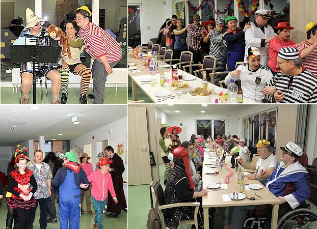 Ausgelassene Stimmung im Wohnheim der Johannes Diakonie  (Fotos: privat)(bro) (mr) Die Probe des "MobilTON"-Chors am Dienstag, 10. Februar, wurde zur Faschingsfeier. Ausgelassene Stimmung herrschte im Proberaum im Wohnheim der Johannes Diakonie in Eberbach.