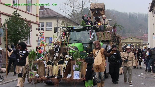 Mehr als 70 Zugnummern hatten sich bei Zugmarschall Wolfgang Röderer von der Karnevalgesellschaft Kuckuck angemeldet. Neben vielen Gruppen der KG Kuckuck waren die Hirschhorner Ritter, die Neckargemünder KG, die KG Urmel und der Club Eulenspiegel mit größeren Abordnungen vertreten. Zusätzlich verstärkten zahlreiche weitere Vereine und Privatinitiativen den närrischen Umzug. Die Teilnehmer kamen unter anderem aus Schwarzach, Heddesbach, Schönau, Lindach, Neckarwimmersbach, Waldkatzenbach, Igelsbach, Pleutersbach, Hesselbach und Sensbachtal.