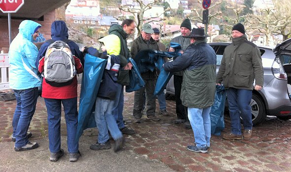 14 freiwillige Helfer rückten zur frühen Morgenstunde um 8.30 Uhr am Neckarlauer an, wo Organisator Kurt Unzeitig, Müllsäcke, Schnüre zum Zubinden und Arbeitshandschuhe verteilte. Rasch waren die Teams zusammengestellt und auf beide Neckarufer verteilt. Umgeben von Vogelgezwitscher und einem Mix aus Sonne und Regen sammelten fleißige Hände in knapp zweieinhalb Stunden insgesamt acht Säcke voll Unrat. Aufgrund des ausbleibenden Hochwassers zieht Kurt Unzeitig eine erfreuliche Bilanz: „Der Müll wird weniger, und das ist gut so.“