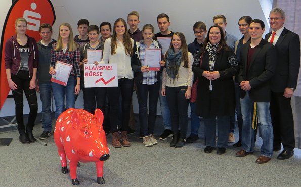 Mit einem fiktiven Startkapital von 50.000 Euro gingen im Regionalmarkt Eberbach zehn Spielgruppen beim diesjährigen Börsenspiel ins Rennen. Sie alle kommen aus der 10. Jahrgangsstufe des HSG und wurden von ihren Lehrkräften Marion Oechsner-Hieke, Charlotte Theobald und Tobias Gerber bei Bedarf unterstützt und beraten. Laut Gerber hätten die Jugendlichen aber weitestgehend die Aktienkäufe und -verkäufe selbst gestaltet. Für die fünf Besten, die in der Zeit von Oktober 2014 bis Januar 2015 einen Gewinn erwirtschaftet haben, gab es echte Geldgutscheine. Den 1. Platz belegten die jungen Frauen aus dem "Top Team" und erhielten von Emig einen 150-Euro-Gutschein. Zweiter wurde der "Benedikts_Fanclub”, der sich über 125 Euro freuen kann. Die "BörsenQUEENS" kamen auf den 3. Platz und durften einen 100-Euro-Gutschein mit nach Hause nehmen. Den 4. und 5. Platz belegten "Die dynamischen Broker" und "GrenzgängerODW". Emig überreichte auch ihnen Gutscheine im Wert von 75 Euro und 50 Euro.