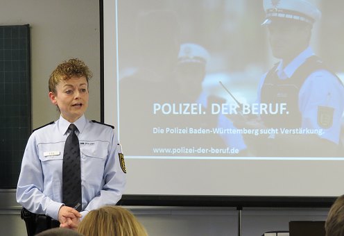 Karriere bei den Ordnungshütern (Foto: Claudia Richter)(cr) Die Polizei Baden-Württemberg bietet jährlich viele Ausbildungs- und Studienplätze an. Im Polizeirevier Eberbach informierte vorgestern zum zweiten Mal die Einstellungsberaterin des Polizeipräsidiums Mannheim, Bianca Erbs, über die beruflichen Möglichkeiten bei der Polizei.