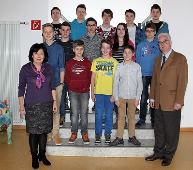 Das Unterstufenteam setzte sich aus den Schülern Luca Röderer, Daniel Sohns, Max Streffer und Quinten van Elsacker zusammen. Die Mittelstufe wurde von folgenden Schülern repräsentiert: Peter Martin, Johannes Müller, Christoph Reichert, Laura Wilken und Elias Wolf. Beide Gruppen standen jeweils in Konkurrenz zu 25 Teams aus nordbadischen Gymnasien. Die Oberstufe musste sich mit 21 Gegnern messen und wurde von Jan Arneth, Hans Geißner, Tim Holzschuh, Joschka Schöner und Marco Wittrich vertreten.