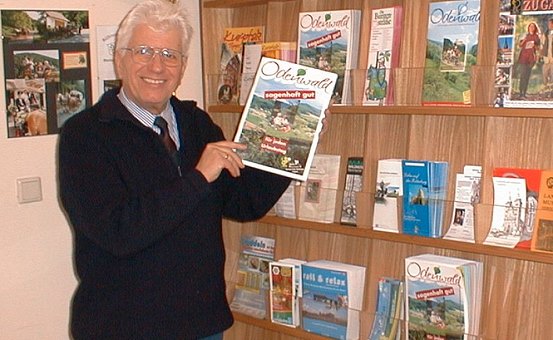 Heinrich Neuer setzte sich mit Leib und Seele für den Tourismus in Eberbach ein. Er war bei Gästen und Gastgebern gleichermaßen beliebt. 1973 begann er bei der Stadt Eberbach als Mitarbeiter im Verkehrsamt, später in der städtischen Kurverwaltung GmbH. Ab Anfang 1995 bis Ende 2001 war Neuer Leiter der Tourist Information, die damals im Thalheimschen Haus in der Kellereistraße untergebracht war. Unser Bild zeigt ihn dort im Januar 2001 “in seinem Element”.