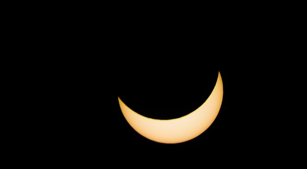 Die Sonne wurde zur Sichel So war - mit Spezialfolie - die Sonnenfinsternis in Eberbach heute um 10.45 Uhr zu sehen. (Foto: Hubert Richter)(hr) Auch in Eberbach und Umgebung war die heutige partielle Sonnenfinsternis bei wolkenlosem Himmel sehr gut zu beobachten.