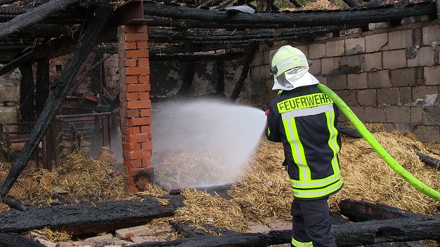 Gegen 3 Uhr war in einer Scheune an der Ortsdurchfahrt in Unter-Sensbach ein Feuer entstanden. Eine Passantin bemerkte den Brand und veranlasste die Alarmierung der Rettungskräfte. Als die ersten Helfer der Freiwilligen Feuerwehr Sensbachtal am Brandort eintrafen, stand die große Scheune bereits lichterloh in Flammen. Das Feuer drohte auf das direkt angrenzende Wohnhaus des landwirtschaftlichen Betriebs überzugreifen. Gemeinsam mit der hinzu alarmierten Feuerwehr Beerfelden konnten die Sensbachtaler in stundenlangem Einsatz Schaden vom Wohngebäude abwenden. Die Scheune war allerdings nicht mehr zu retten.