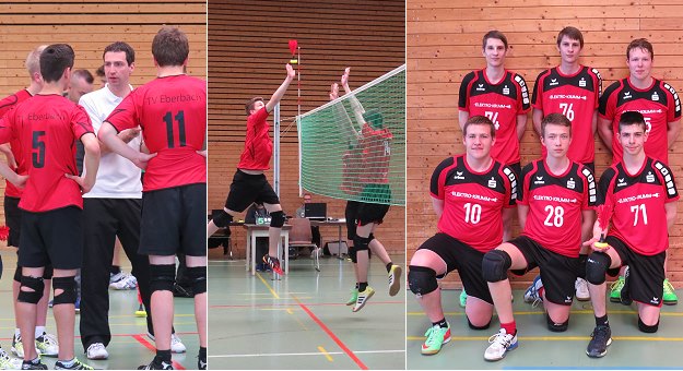 Der TV Eberbach wollte im Turnier mit den Top-Teams mithalten und, wenn möglich, die Teilnahme eines Halbfinales erzielen. Bereits im ersten Spiel traf der TV Eberbach dabei auf den amtierenden Deutschen Jugendmeister und WorldCup Sieger aus Blankenloch und konnte im ersten Satz die Nervosität kaum ablegen. Folgerichtig entschied der Favorit den ersten Satz deutlich für sich. Im zweiten Satz steigerte sich der TV Eberbach überraschend, setzte immer wieder Akzente und punktete regelmäßig durch die Angriffe von Giulio Broghammer und Tobias Wollkopf. Mit 25:22-Punkten konnte so unerwartet ein erster Satzgewinn verbucht werden. Auch in den anderen Spielen zeigten die Eberbacher Jungs phasenweise ansehnliche Spielzüge und konnten für viele überraschend Satzgewinne gegen den TSV Grünwinkel und die luxemburgische Topmannschaft von Indiaca Bettenduerf feiern. Somit erreichte die Mannschaft von Trainer Daniel Müller das gesteckte Ziel und zog als Vierter der Vorrunde ins Halbfinale ein. In einem über weite Phasen deutlichen Spiel gegen den Deutschen Vizemeister von Indiaca Malterdingen führte Eberbach jeweils zu Satzbeginn, konnte aber im Spielverlauf nicht die notwendige Konstanz oder Glückstreffer verbuchen. Mit 0:2 Sätzen scheiterte das Team des TV Eberbach letztendlich im Halbfinale an einem überlegenen Konkurrenten aus Südbaden.