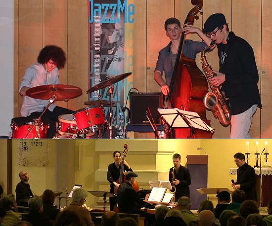 Eine nicht alltägliche Location für ein Jazzkonzert stand am Ende der diesjährigen “JazzMe”-Reihe: Am Sonntagvormittag, 29. März, gestalteten Andreas Viehöver, Clara Däubler, Patrick Schneider und der Saxofonist Paul Stoltze einen Jazzgottesdienst in der evangelischen Michaelskirche (Bild unten).