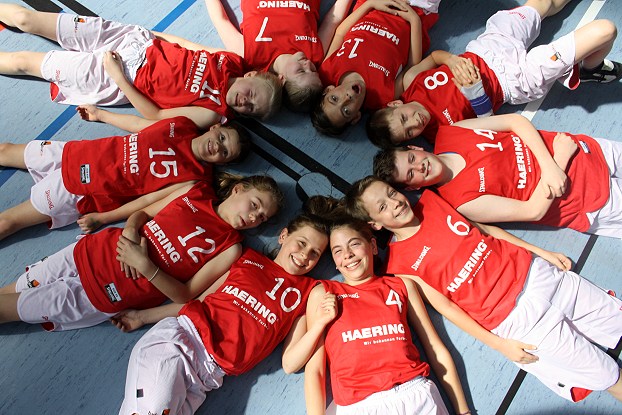 Am Ende lief alles rund Grund zur Freude hatte das Team der U12-Basketballer: Charlotte Harslem (Trikot-Nr. 10), Myriam Tewes (Nr. 12), Melanie Heß (Nr. 15), Kathrin Juschka (Nr. 11), Sofie Halbedel (Nr. 7), Kasimir Walz (Nr. 13), Max Bode (Nr. 8), Nils Kuchar (Nr. 14), Konrad Bode (Nr. 6), Antonia Plagge (Nr. 4). (Foto: privat)(bro) (sh) Spannend ging es am vergangenen Samstag beim letzten Spiel der Eberbacher U12-Basketballer in der Kreisliga im Kampf um Platz eins in Viernheim zu. Beide Mannschaften gingen punktgleich in diese Partie.