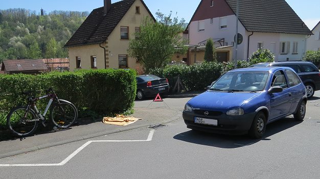 Gegen vorfahrtberechtigtes Auto gefahren und gestürzt (Foto: Claudia Richter)(cr) Schwere Verletzungen erlitt heute Nachmittag eine Radfahrerin bei einem Unfall in Eberbach-Nord.