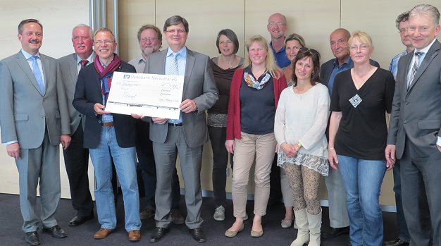 Heute überreichten in den Räumen der Volksbank Neckartal in der Bahnhofstraße die Mitglieder des Rotary Clubs Udo Backfisch und Frieder Reichert zusammen mit dem Präsident der Lions Frank Knecht und Lions-Mitglieder Günter Apeltauer und Roland Schilling den Vertreterinnen und Vertretern der Vereine Schecks in Höhe von jeweils 250 Euro.