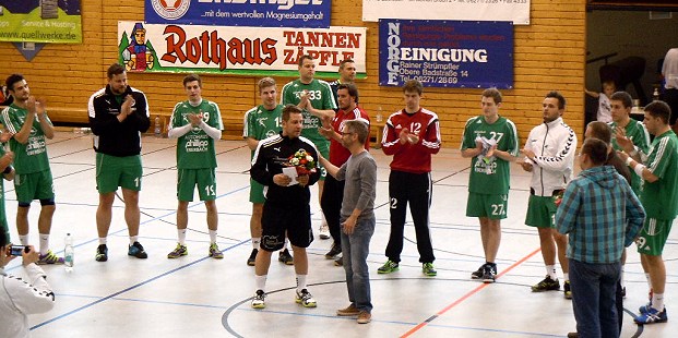 Dennoch wollten sich die Männer um Trainer Daniel Weißbrodt am vergangenen Samstag mit einem Sieg von ihren Fans verabschieden. Für Daniel Weißbrodt selbst war es das letzte Spiel als Trainer der HGE. Vereinsführung, Aktive und Fans bedankten sich vor der Partie für sein jahrelanges aufopferungsvolles Engagement.
