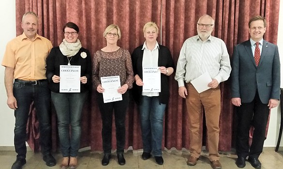 Bürgermeister Peter Reichert und Jochen Benkwitz ehrten an diesem Abend mehrere Mitglieder für Ihre jahrelange Treue zum Verein. Vom ersten Tag an, d.h. 55 Jahre, dabei ist Willi Rebscher, für 45 Jahre wurde Roswitha Peters, für 25 Jahre Waltraud Rutz und Martina Salerno, für zehn Jahre Patricia Brenneis, Christin Dietz und Hendrik Münch geehrt.