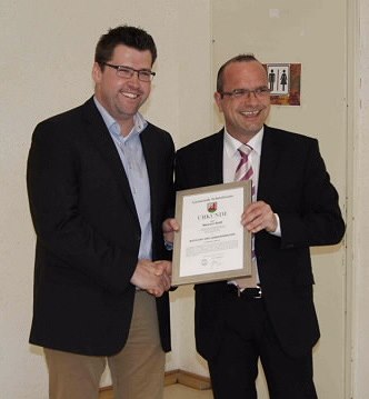 Heiß tritt die Nachfolge von Benjamin Layer an, der aus der Gemeinde Schönbrunn weggezogen ist und deshalb sein Ratsmandat aufgeben musste. Manuel Heiß (im Bild links) hatte bei der letztjährigen Kommunalwahl für die Freien Wähler kandidiert und 552 Stimmen erhalten.