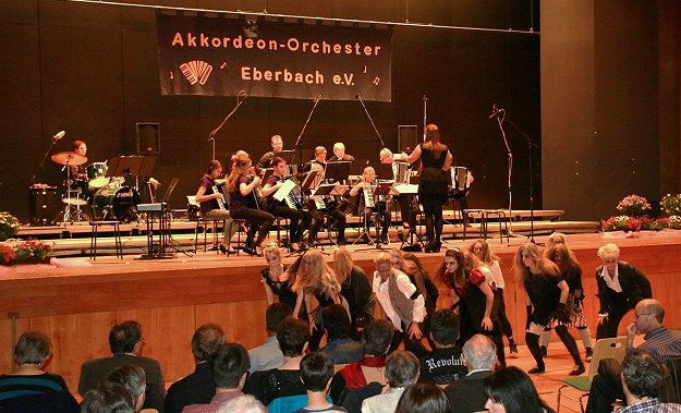 Tastenkünstler boten Welthits - Tanzensemble sorgte für Gruselfeeling (Foto: privat)(hr) (uba) Am gestrigen Samstagabend ab 19 Uhr zeigten die Musikerinnen und Musiker des Akkordeon-Orchesters Eberbach bei ihrem Jahreskonzert in der Stadthalle, dass Akkordeons in der Lage sind, sogar Weltstars auf die Bühne zu holen.