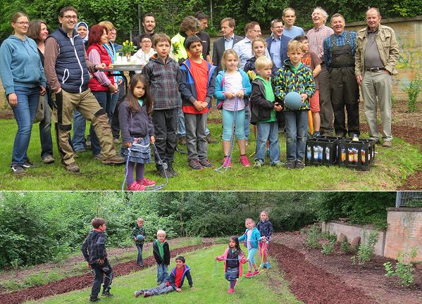 Kinder dürfen wieder auf ehemaligem Spielplatz toben und lernen  (Foto: Claudia Richter)(cr) Ein "Draußenklassenzimmer" haben Mitglieder des Rotaryclubs Eberbach am Steigeschulzentrum gestaltet. Gestern wurde es offiziell seiner Bestimmung übergeben.