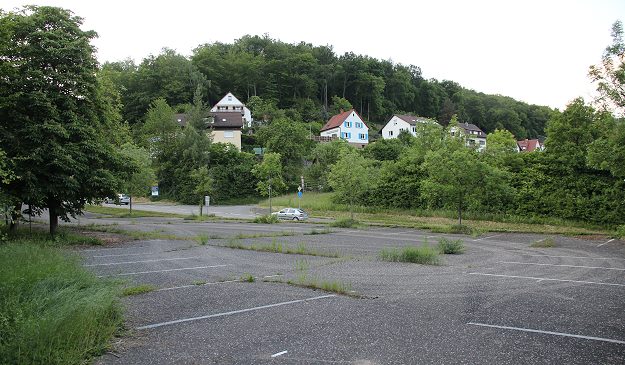 Ja zu Ansiedlung eines Metallbaubetriebs aus Hirschhorn Auf dem ehemaligen Parkplatz des Gasthauses soll eine Gewerbehalle entstehen. (Foto: Hubert Richter)(hr) Grünes Licht gab der Eberbacher Gemeinderat gestern Abend für die Nutzungsänderung einer ehemaligen Gaststätte und den Neubau einer Gewerbehalle im Gretengrund.